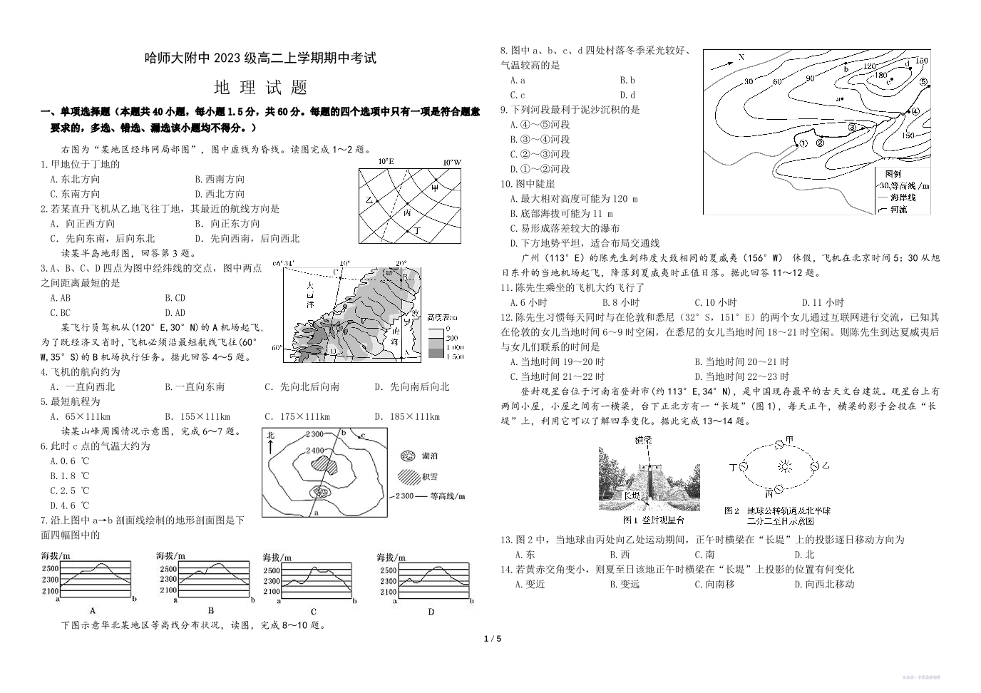 地理-黑龙江省哈尔滨师范大学附属中学2024-2025学年高二上学期期中考试.pdf
