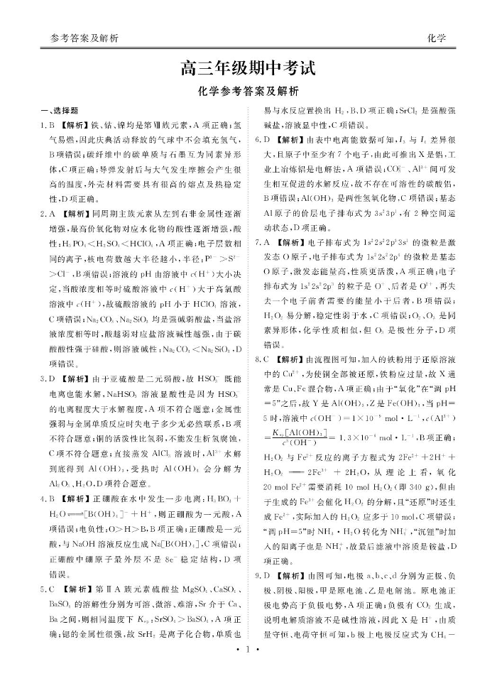 河北省2025-2026学年高三上学期12月期中联考 化学答案.pdf