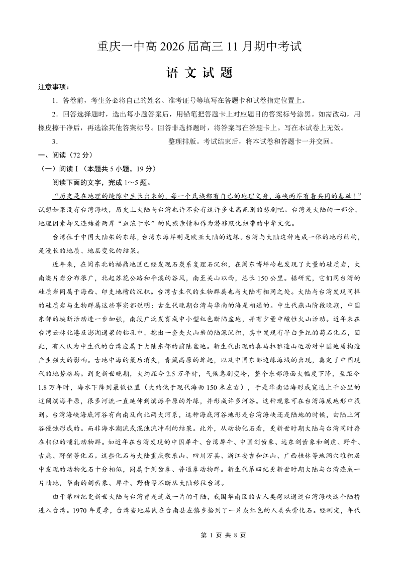 重庆市第一中学校2025-2026学年高三上学期11月月考 语文.pdf