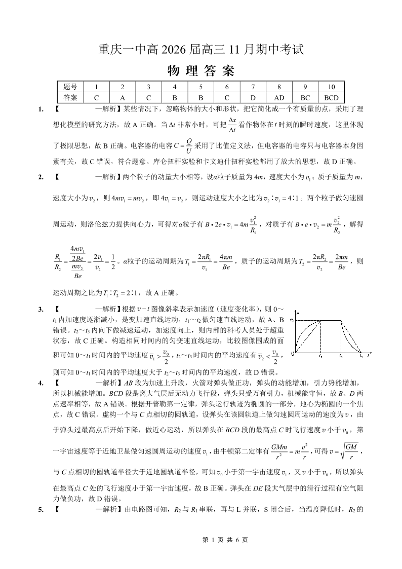 重庆市第一中学校2025-2026学年高三上学期11月月考 物理答案.pdf