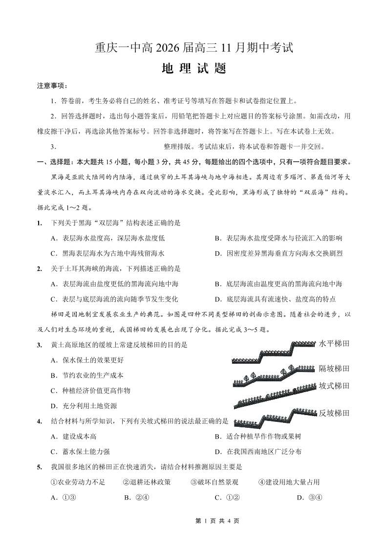 重庆市第一中学校2025-2026学年高三上学期11月月考 地理.pdf