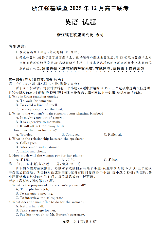 浙江强基联盟2025年12月高三联考 英语.pdf