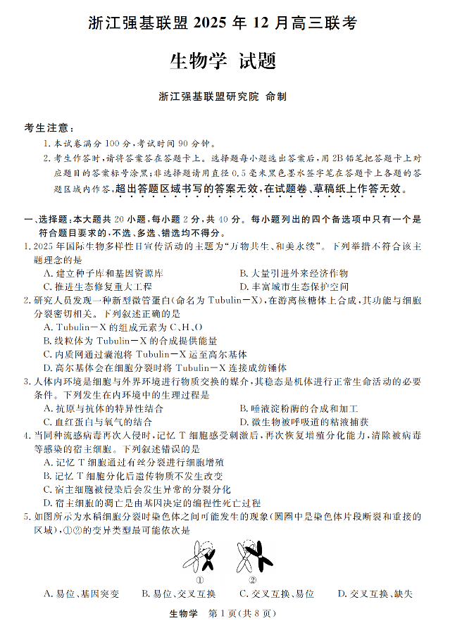 浙江强基联盟2025年12月高三联考 生物.pdf