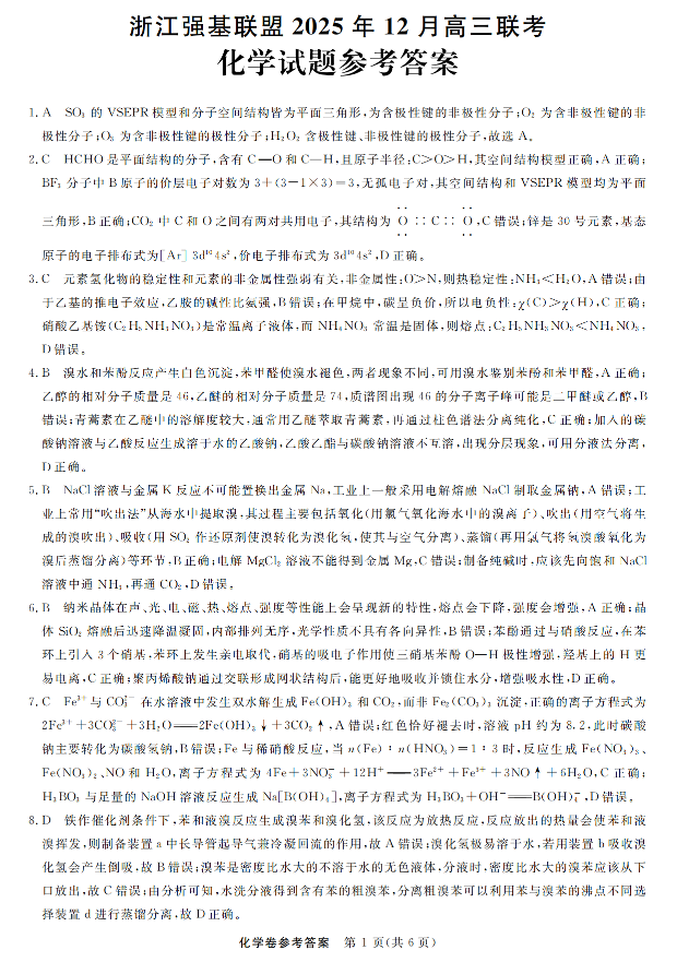 浙江强基联盟2025年12月高三联考 化学答案.pdf