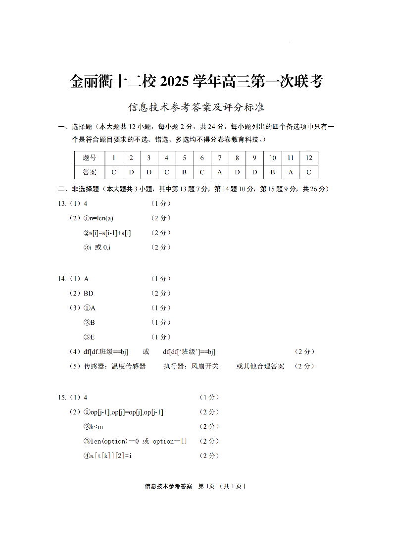 金丽衢十二校2025学年高三第一次联考 技术答案.pdf