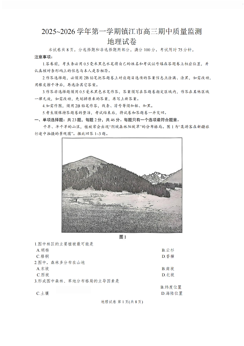镇江市2025~2026学年第一学期高三期中质量监测 地理试题(含答案).pdf
