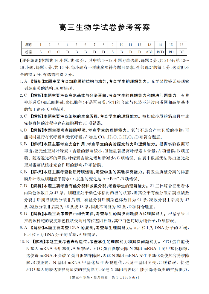 湖南省2026届高三上学期11月联考 生物答案.pdf