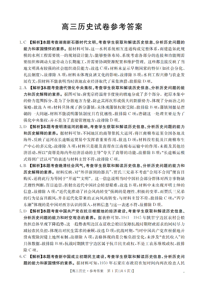 湖南省2026届高三上学期11月联考 历史答案.pdf