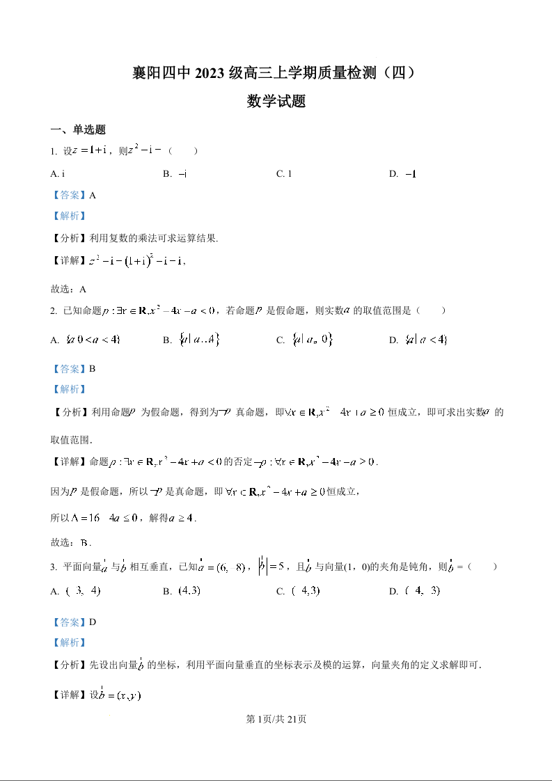 湖北省襄阳市第四中学2026届高三上学期12月月考 数学答案.docx