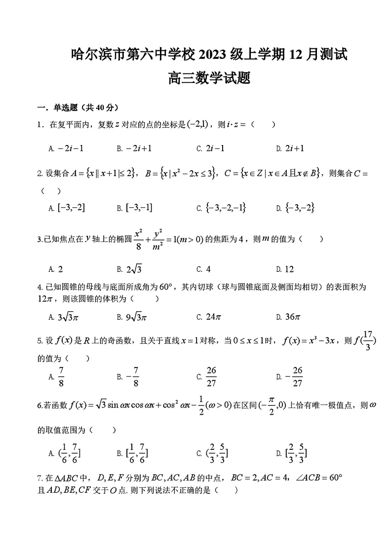 哈尔滨市第六中学校2023级上学期12月测试 数学试题(含答案).pdf