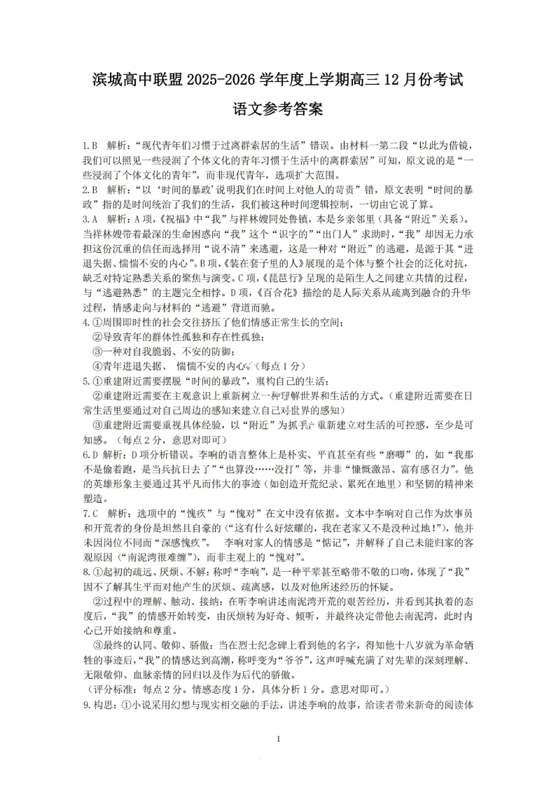 大连滨城高中联盟2025-2026学年度上学期高三期中Ⅱ考试 语文答案.pdf