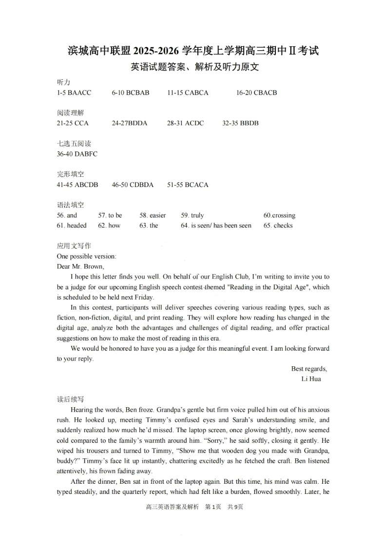 大连滨城高中联盟2025-2026学年度上学期高三期中Ⅱ考试 英语答案.pdf