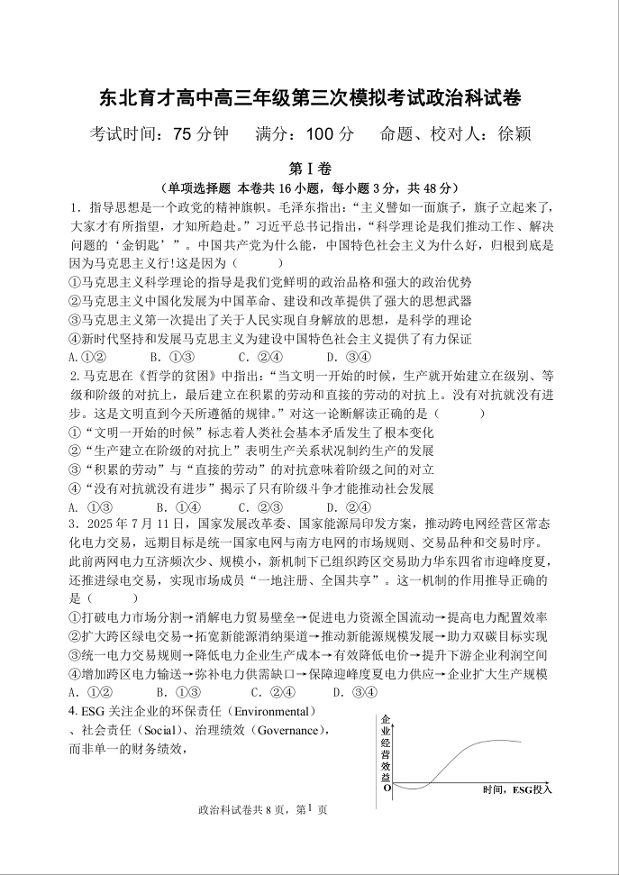 东北育才高中2026届高三年级第三次模拟考试 政治.docx