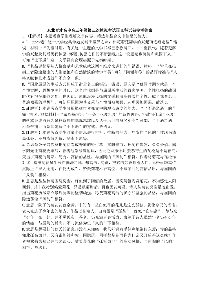 东北育才高中2026届高三年级第三次模拟考试 语文答案.docx