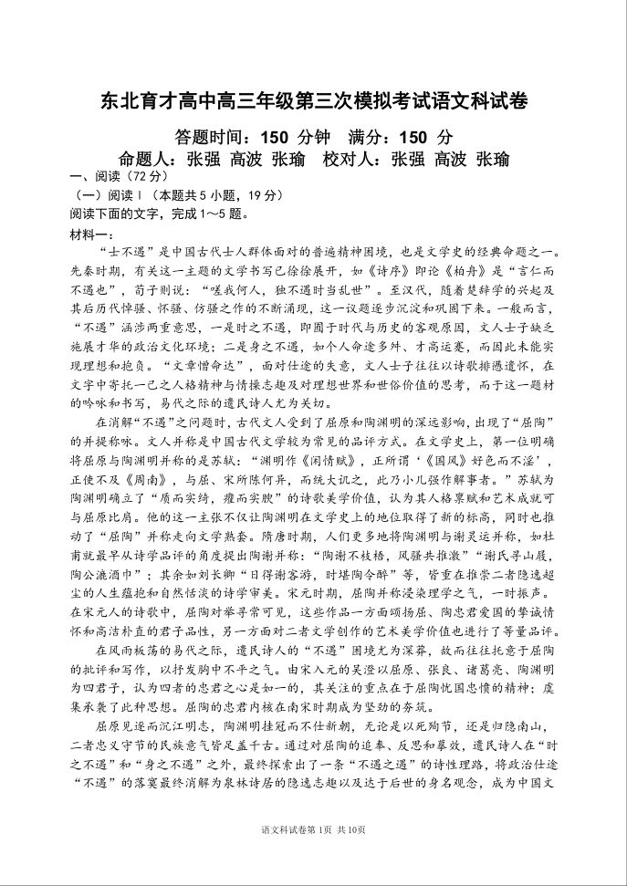 东北育才高中2026届高三年级第三次模拟考试 语文.docx