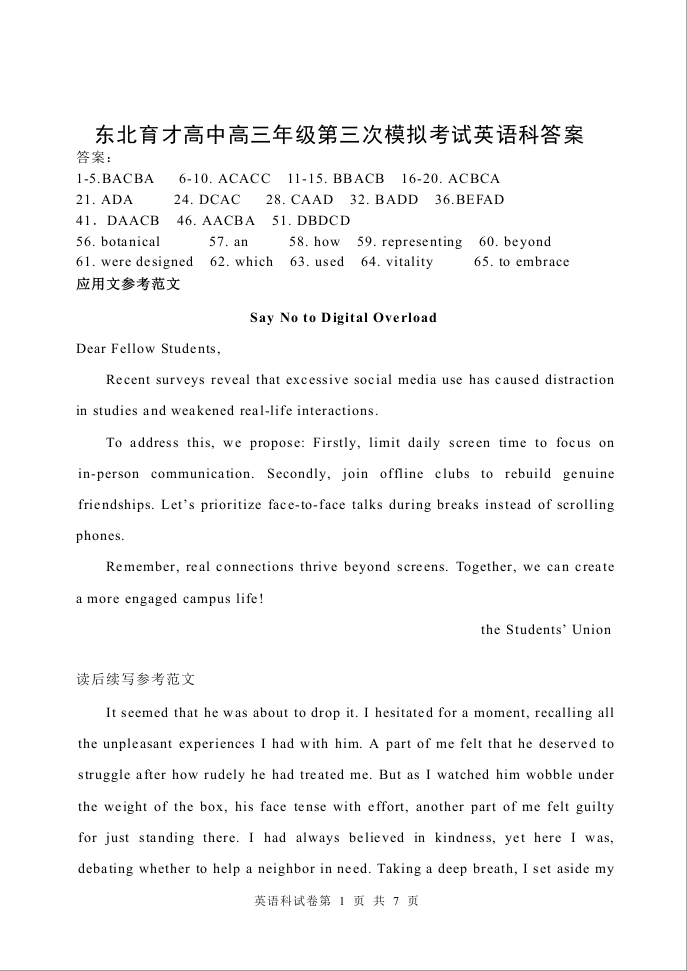 东北育才高中2026届高三年级第三次模拟考试 英语答案.docx