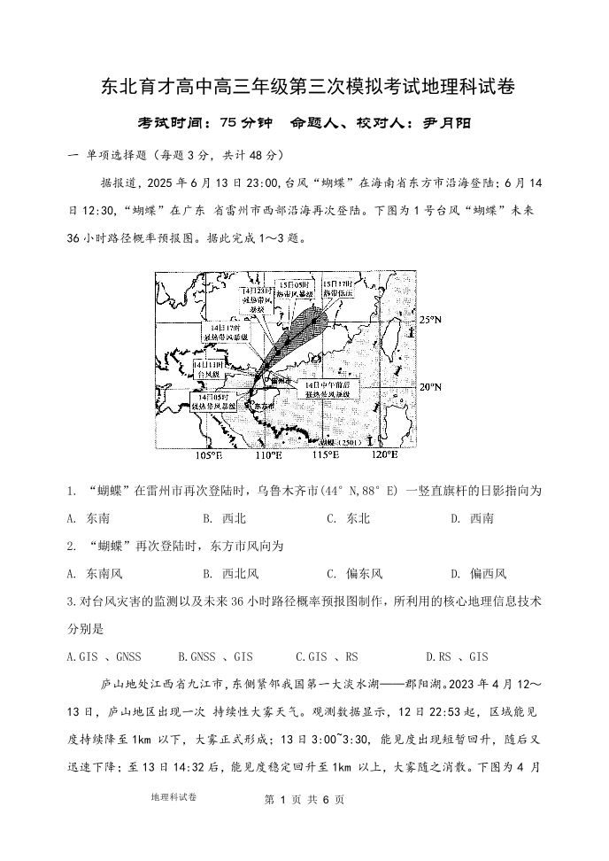 东北育才高中2026届高三年级第三次模拟考试 地理.pdf