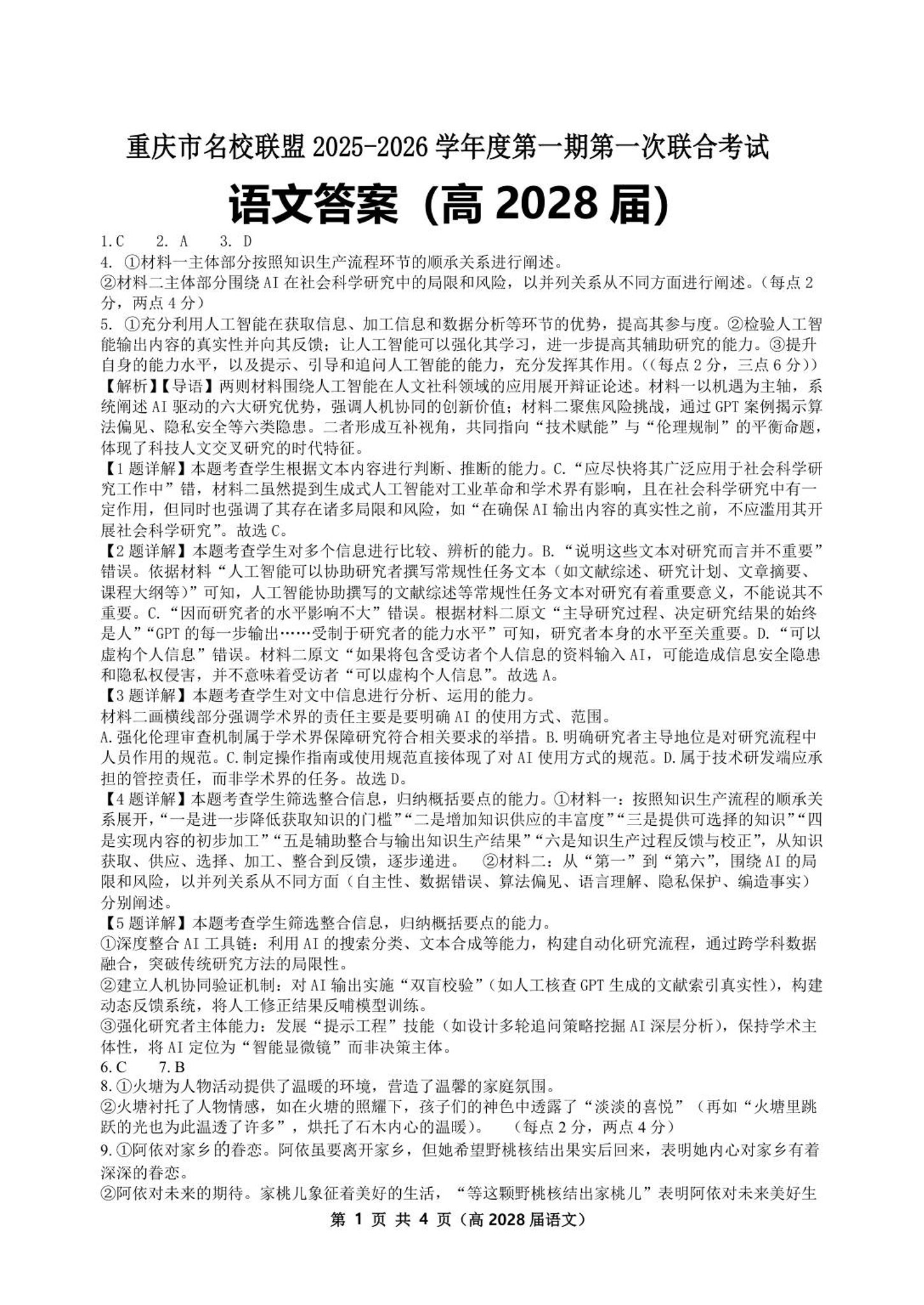 重庆市名校联盟2025-2026学年高一上学期11月期中联考 语文答案.pdf
