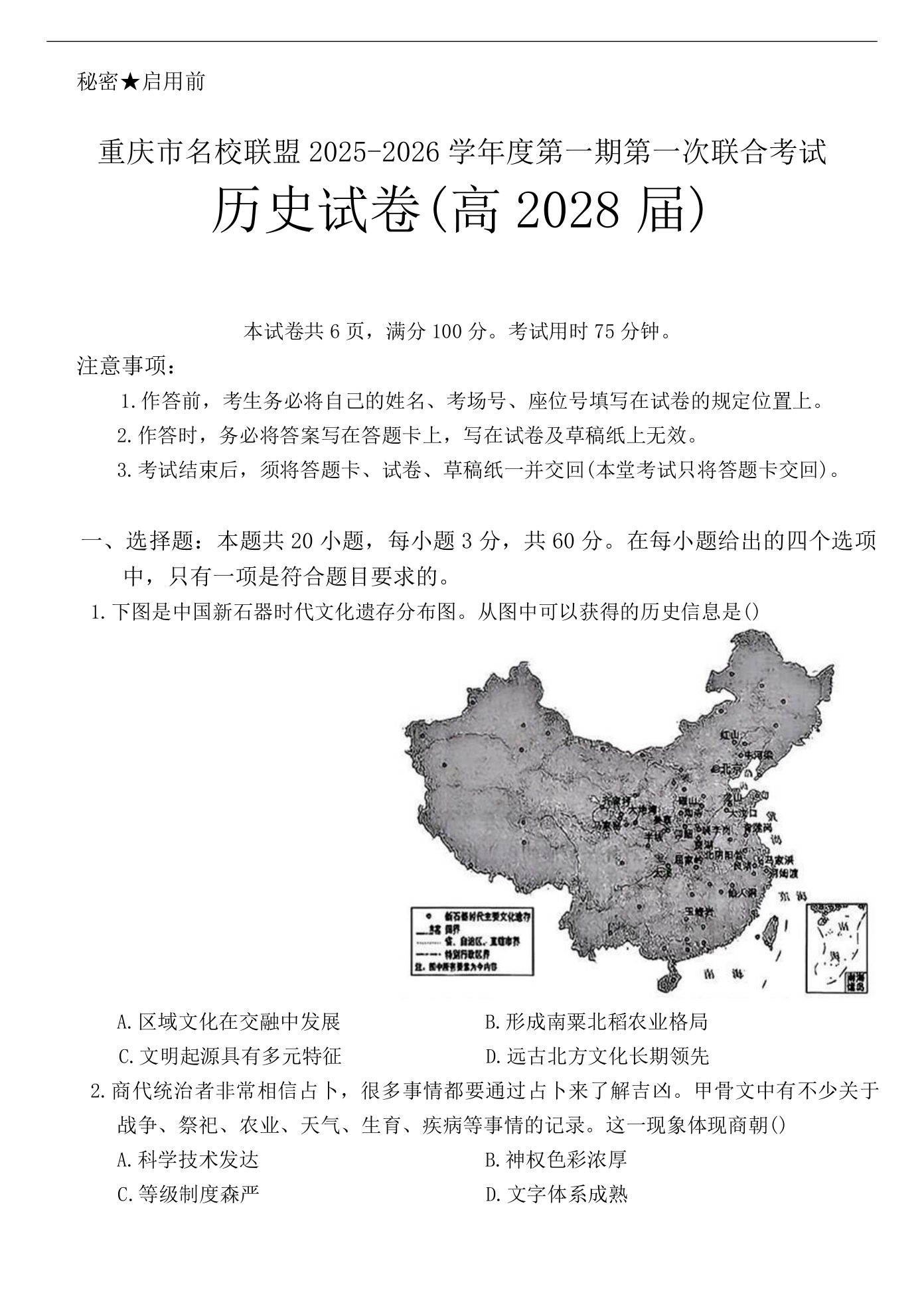 重庆市名校联盟2025-2026学年高一上学期11月期中联考 历史试题(含答案).docx