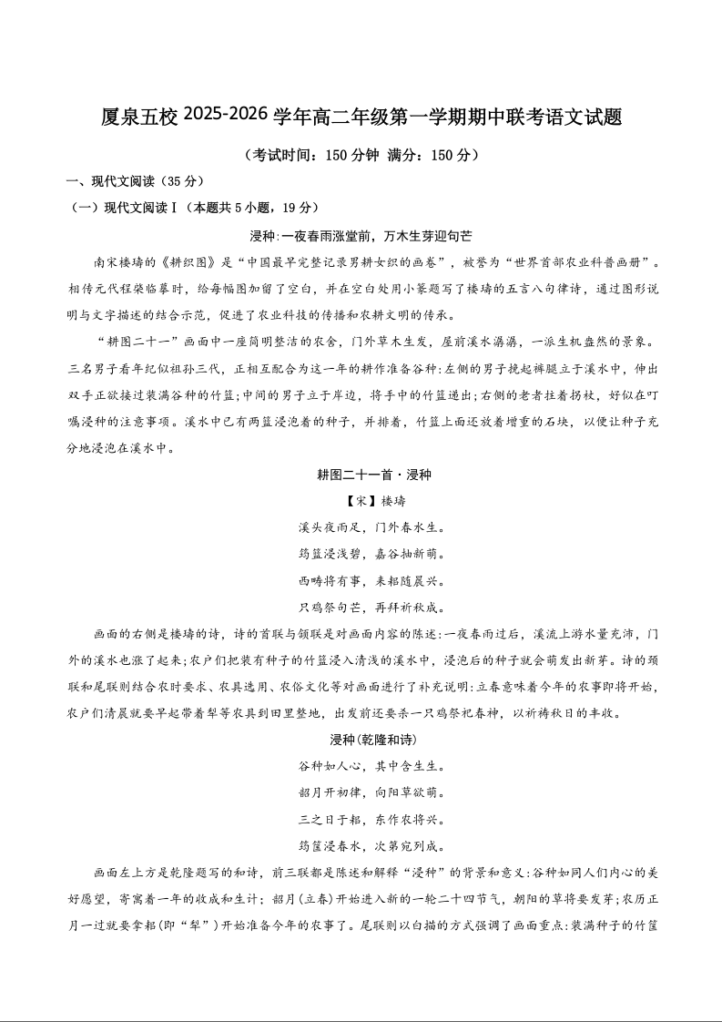 福建省厦泉五校2025-2026学年高二上学期期中联考 语文试题(含答案).docx