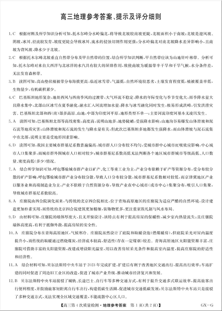 河南省九师联盟2026届高三上学期12月联考 地理答案.pdf