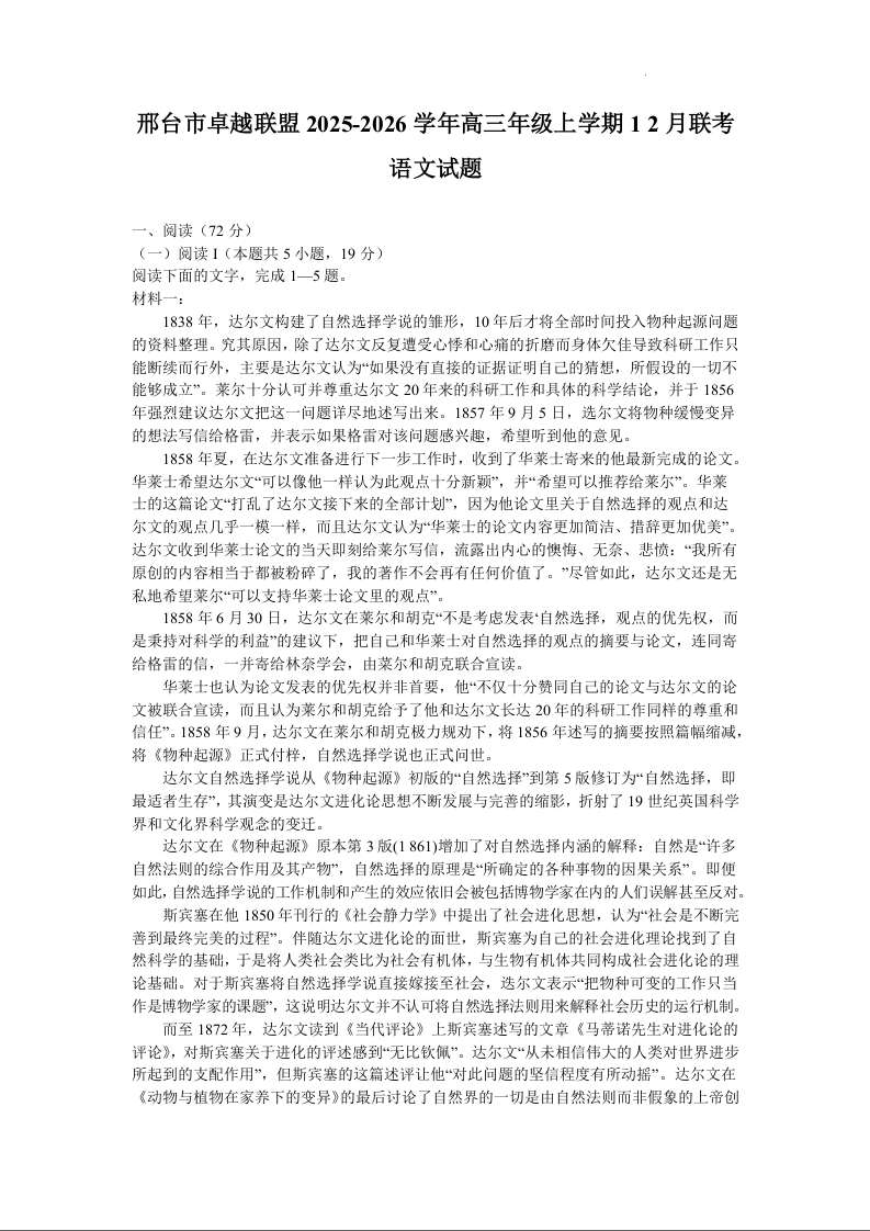 河北省邢台市卓越联盟2026届高三上学期12月期中考试 语文.docx