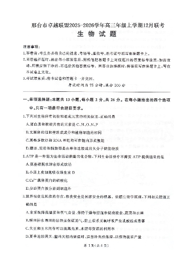 河北省邢台市卓越联盟2026届高三上学期12月期中考试 生物.pdf