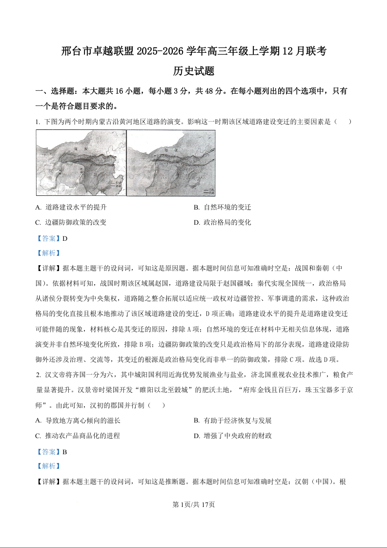 河北省邢台市卓越联盟2026届高三上学期12月期中考试 历史答案.docx
