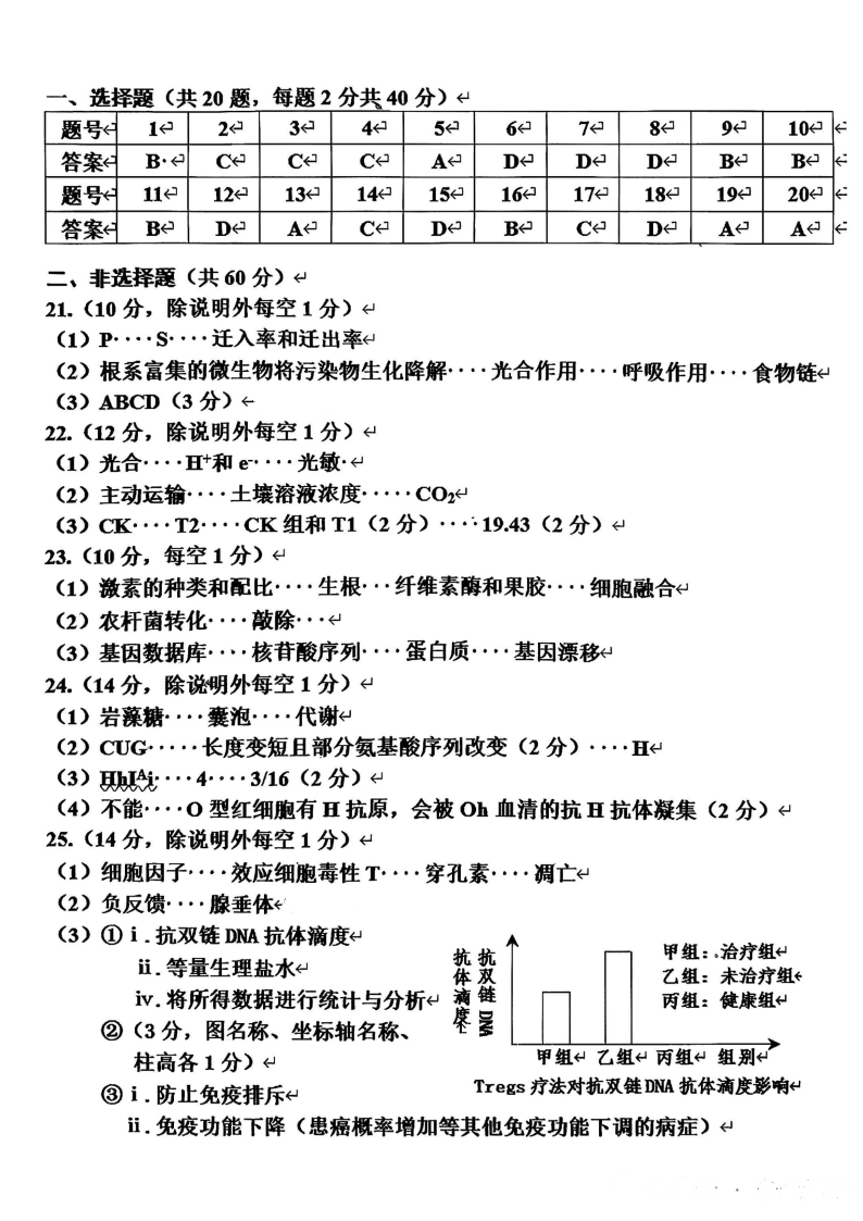 浙江省嘉兴市2025年12月教学测试(嘉兴一模)生物答案.pdf