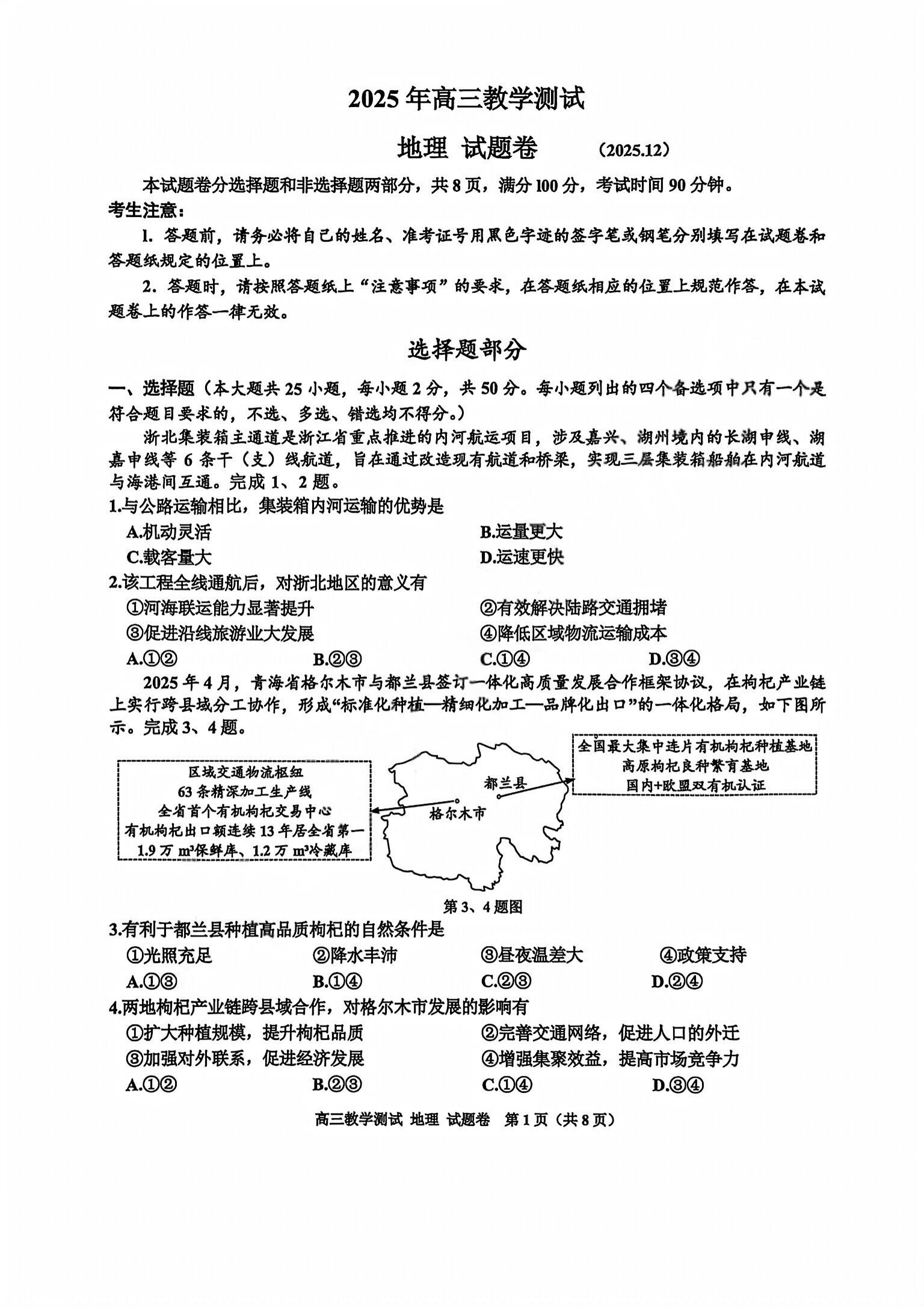 浙江省嘉兴市2025年12月教学测试(嘉兴一模)地理.pdf