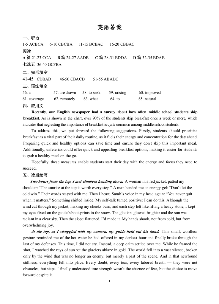 宁夏银川第一中学2026届高三上学期期中考试 英语答案.docx
