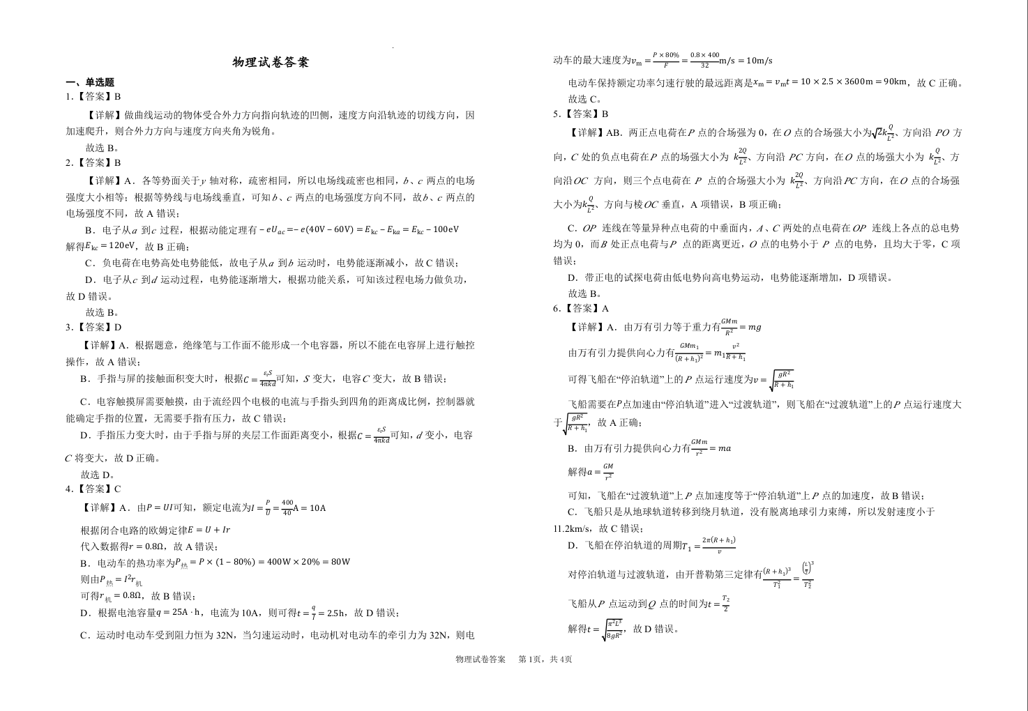 宁夏银川第一中学2026届高三上学期期中考试 物理答案.docx