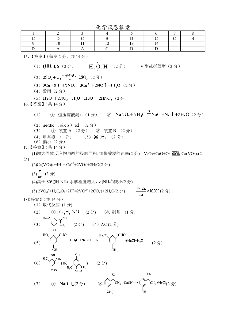 宁夏银川第一中学2026届高三上学期期中考试 化学答案.docx