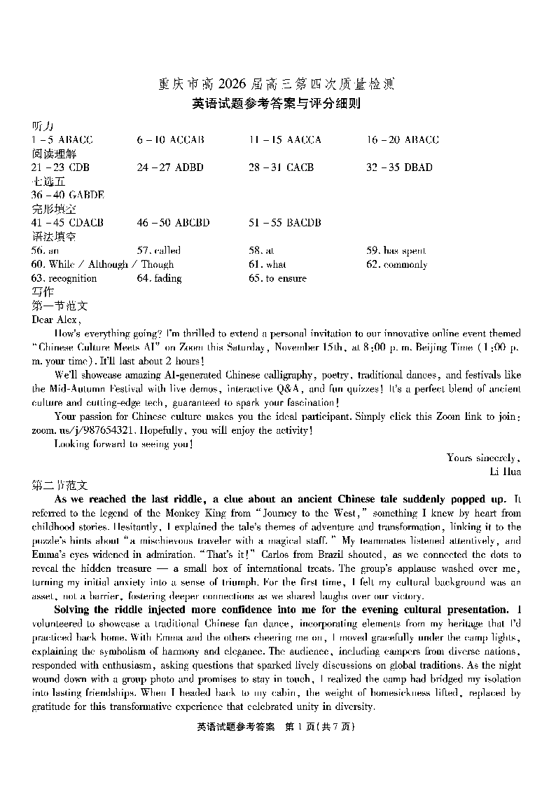南开第四次联考-英语答案.pdf