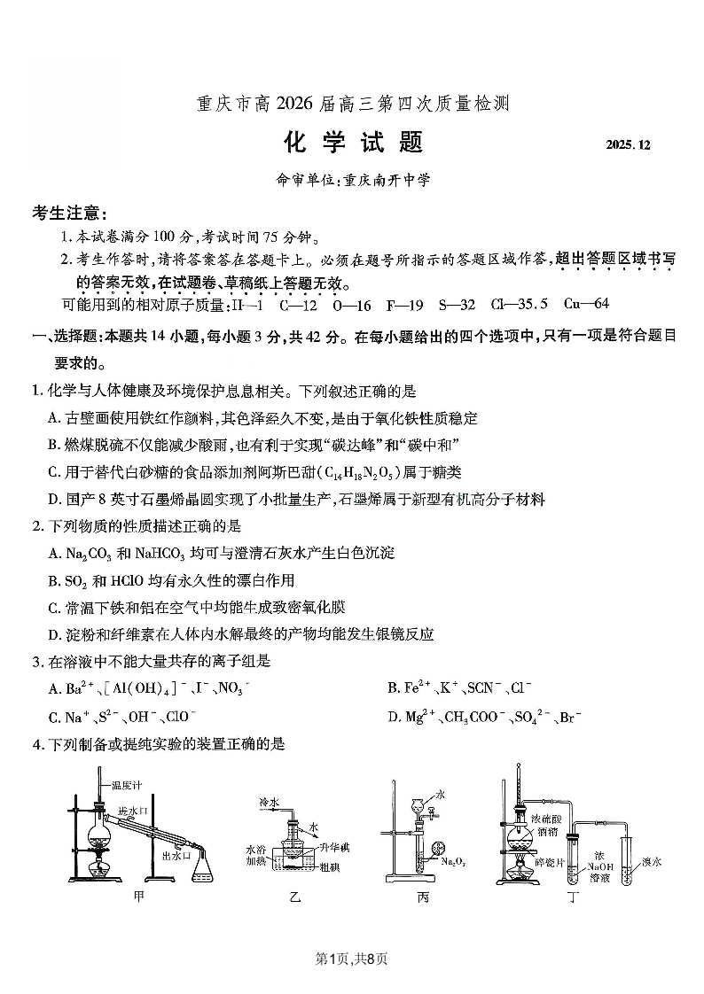 南开第四次联考-化学.pdf