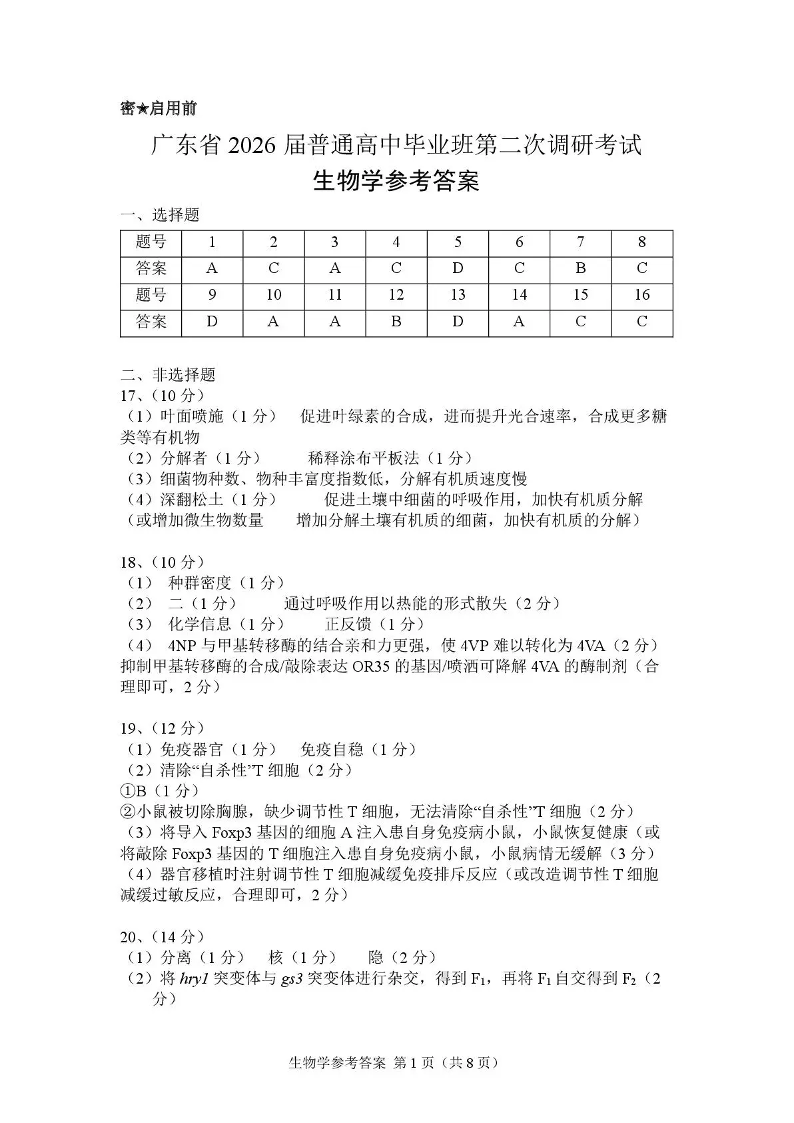 光大联考2026届普通高中毕业班第二次调研考试 生物答案.pdf