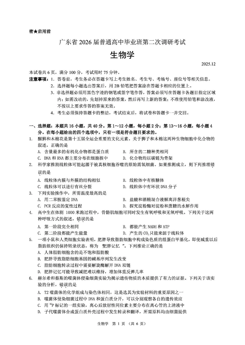 光大联考2026届普通高中毕业班第二次调研考试 生物.pdf