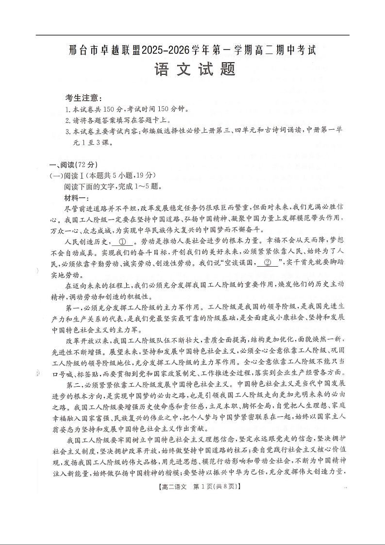 河北省邢台市卓越联盟2025-2026学年高二上学期12月期中考试 语文试题(含答案).docx