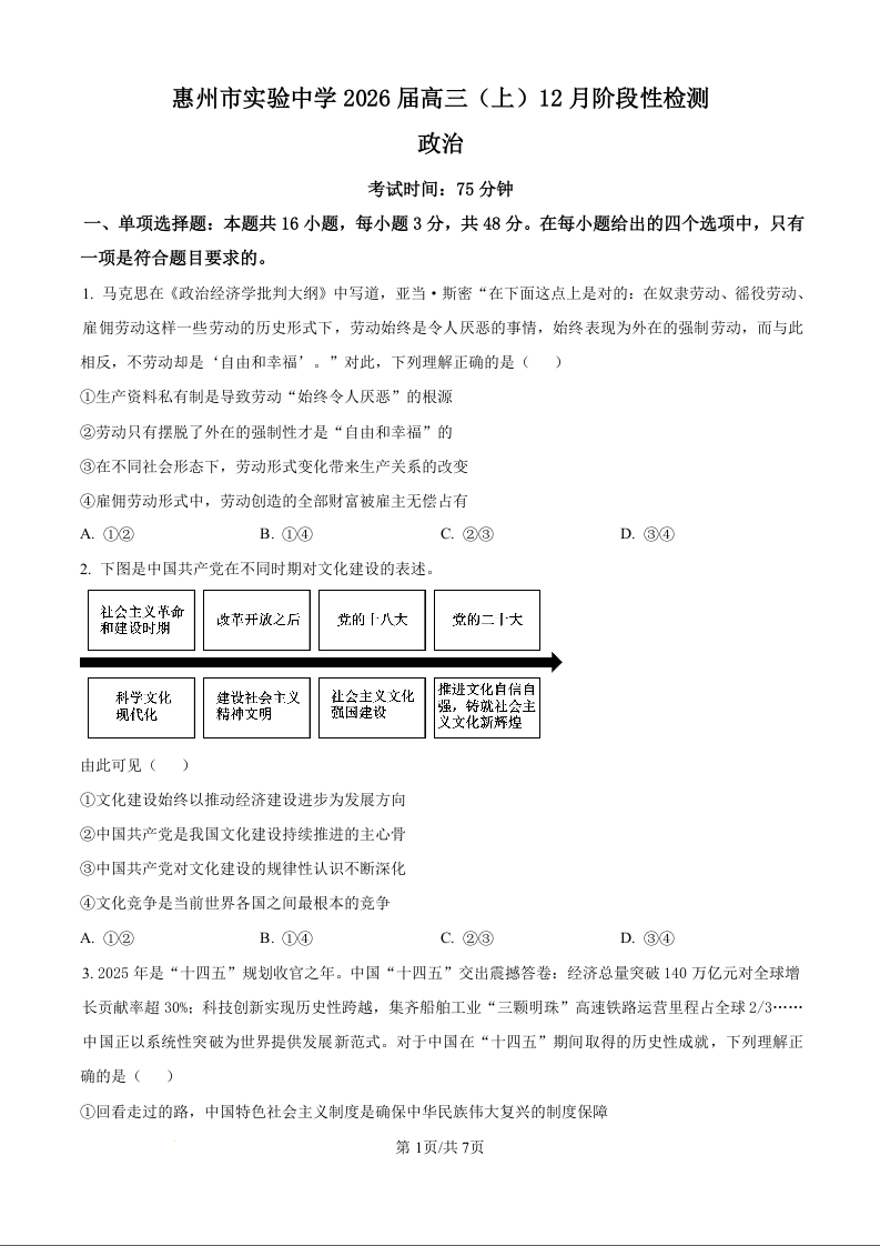 广东省惠州市实验中学2026届高三上学期12月阶段性检测 政治.docx