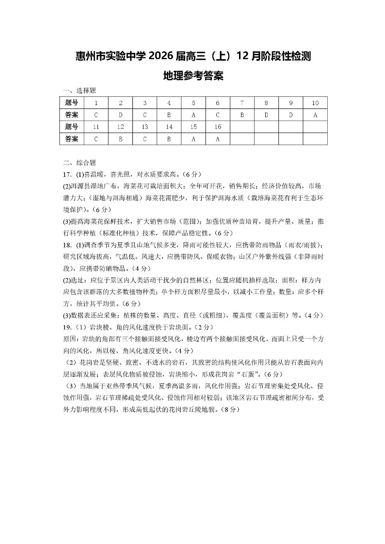 广东省惠州市实验中学2026届高三上学期12月阶段性检测 地理答案.pdf