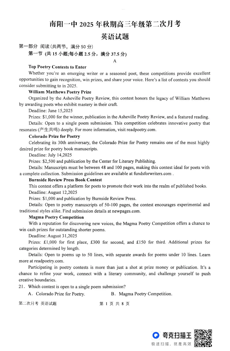 南阳一中2025年秋期高三年级第二次月考 英语.pdf