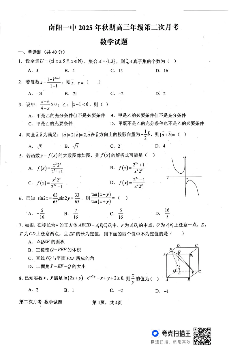 南阳一中2025年秋期高三年级第二次月考 数学.pdf