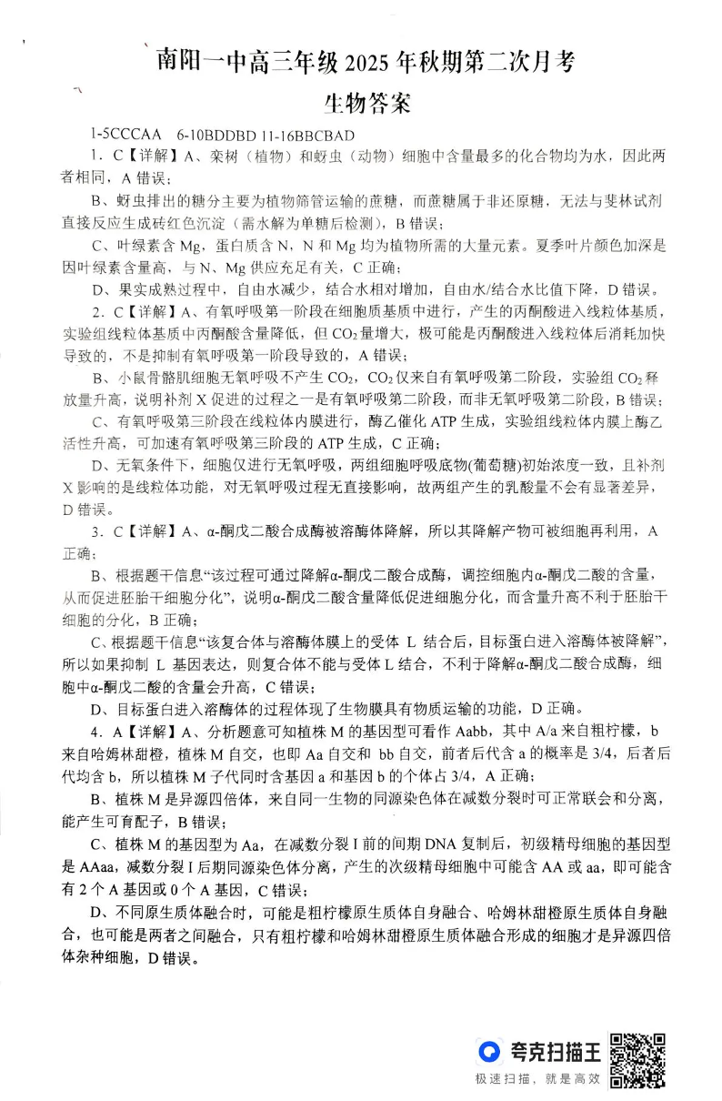 南阳一中2025年秋期高三年级第二次月考 生物答案.pdf