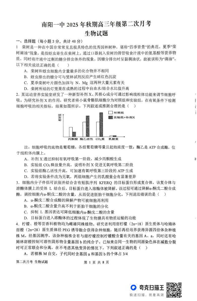 南阳一中2025年秋期高三年级第二次月考 生物.pdf