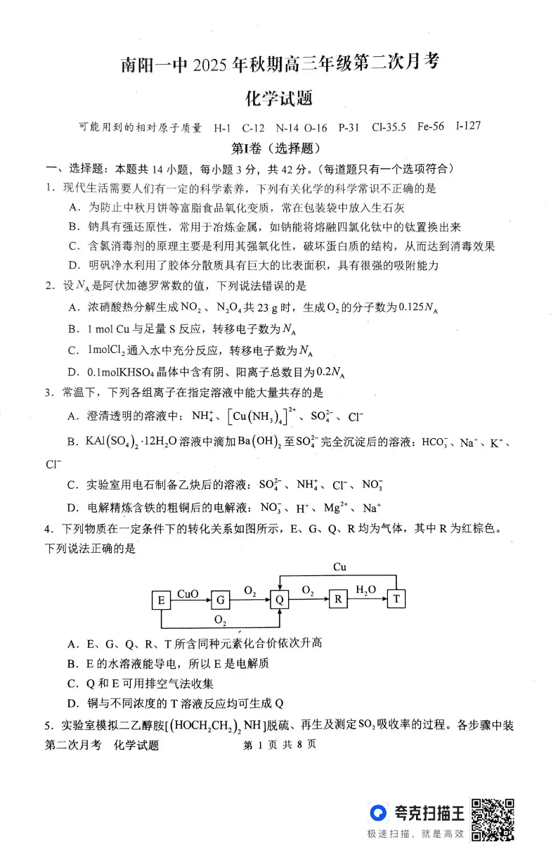 南阳一中2025年秋期高三年级第二次月考 化学.pdf
