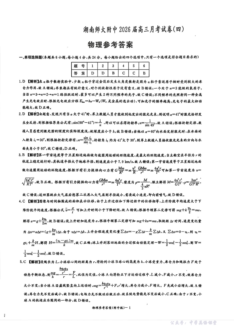 湖南师大附中2026届高三月考试卷(四)物理答案.pdf