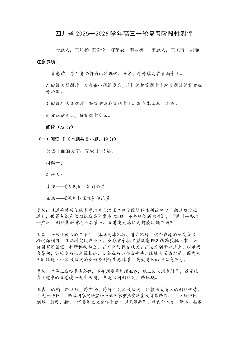 四川省2025一2026学年高三一轮复习阶段性测评 语文答案.docx