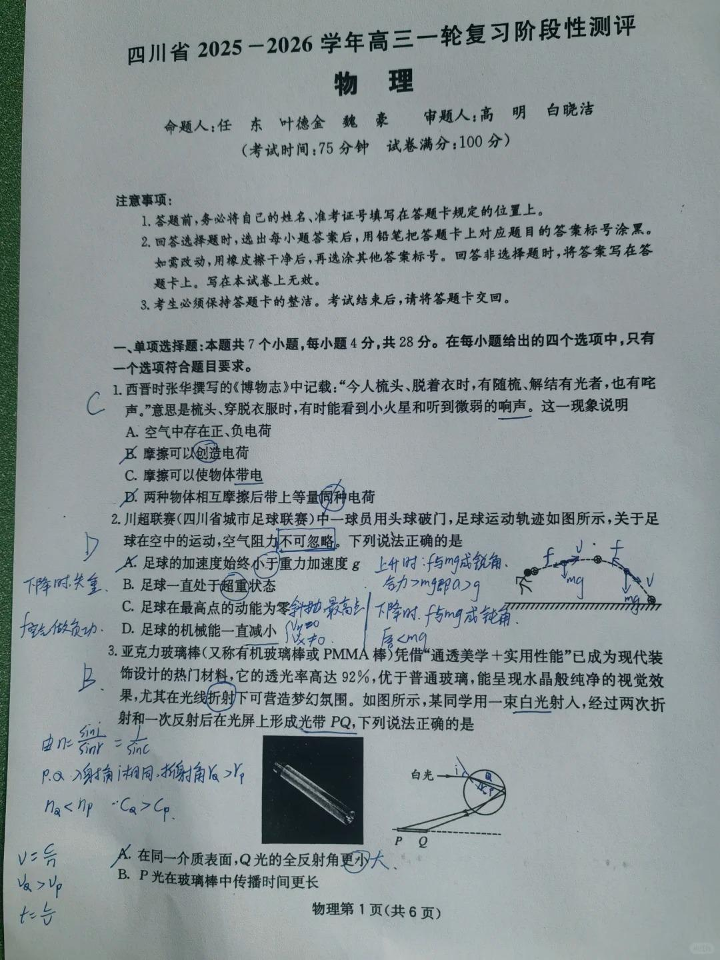 四川省2025一2026学年高三一轮复习阶段性测评 物理答案.pdf