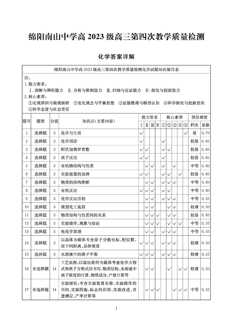 四川省2025一2026学年高三一轮复习阶段性测评 化学答案.pdf