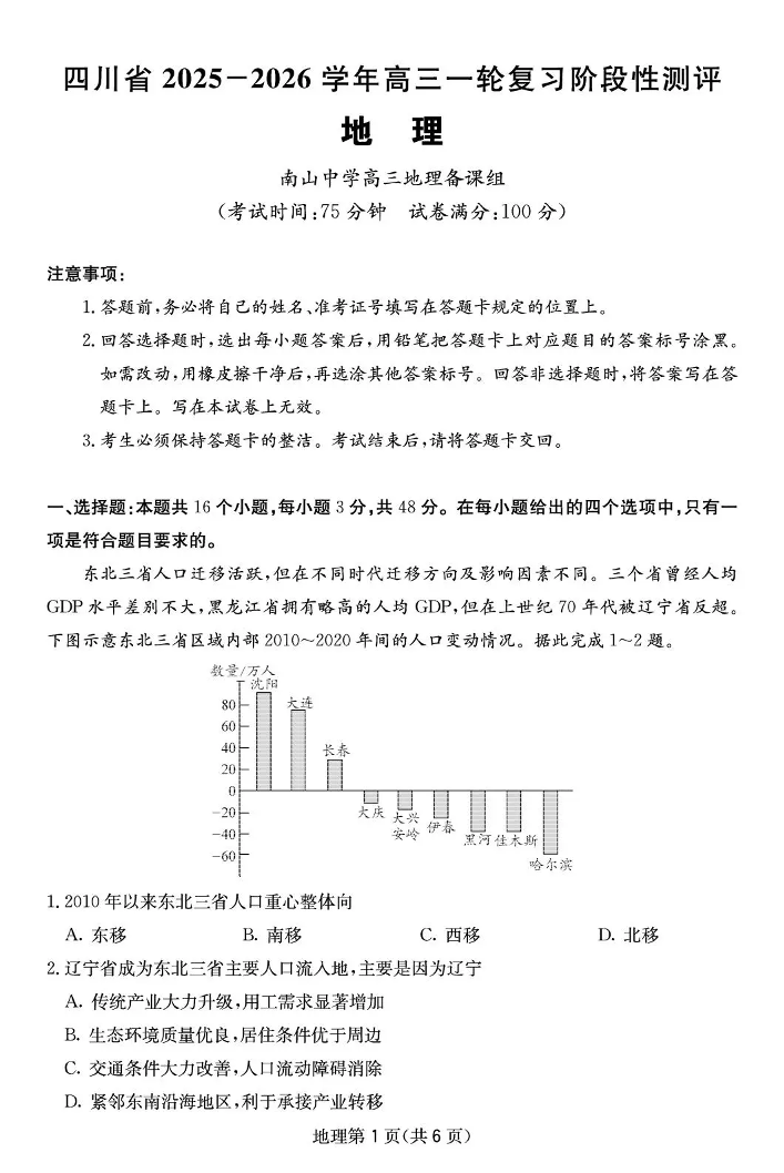 四川省2025一2026学年高三一轮复习阶段性测评 地理.pdf